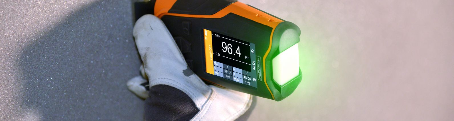 One coating thickness measuring device – diverse applications! The MMS® Inspection DFT is the all-rounder in the field of coating thickness measurement. Ideally suited for coating thickness measurement on both steel and non-ferrous metals, it finds application in a variety of industries. But here’s something special in a coating thickness gage: it’s protected against dust and water jets by an IP65-rated housing. Even under harsh conditions like in heavy corrosion protection, the dry film thickness gauge makes measuring is easy.
